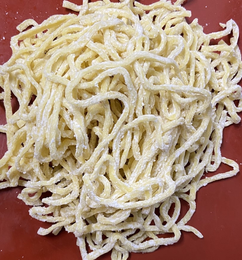 2種類の小麦粉を独自の配合でブレンドしています。モチモチな麺にスープが絡むことで、麺の旨さが更に際立ちます!
